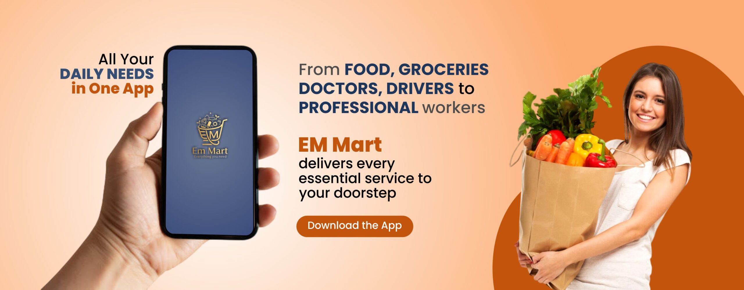We were built with one mission: to make every important service accessible at your doorstep with just one tap. Whether you need a doctor, a driver, vegetables, a mechanic, a tutor, an engineer, or even a marriage profile — EM Mart acts as your trusted companion, delivering convenience and quality whenever you need it.